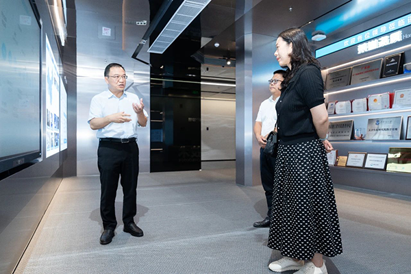 王海霞校长第一时间参观了凯发K8国际技术展厅及研发中心,在产品与解决方案经理辛保华的讲解与展示下,王校长深入分析公司开展历程、核心业务模块、前沿技术应用,以及“传递信息技术,成就客户梦想”的公司愿景,对凯发K8国际技术在ICT领域的技术实力与创新成果给予了高度评价。